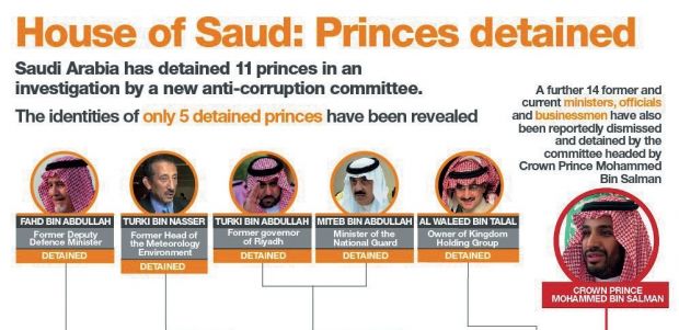 Görünür, kralın tezliklə istefa verəcəyinə dair xəbərlər əsassız deyil. Bu üzdən, Məhəmməd ibn Salmanın vəliəhd elan olunmasından dərhal sonra hakimiyyətin dinc yolla ötürülməsi proseduruna start verilib. Müxalifətçilərin ilk kütləvi həbsi sentyabrda baş verib. Həmin vaxt ölkənin məşhur din xadimləri, ilahiyyatçıları saxlanılıb. Kütləvi həbslər noyabrda da davam edib. Rəsmi açıqlamada bildirilir ki, korrupsiya və vəzifə səlahiyyətlərindən sui-istifadə halları ilə mübarizə çərçivəsində yüzlərlə insan həbs olunub. Onların arasında kral ailəsinin üzvləri, nazirlər və digər yüksək rütbəli məmurlar, nəhəng sahibkarlar və hərbçilər var. Saxlanılmış şəxslərin bank hesabları dondurulub.
