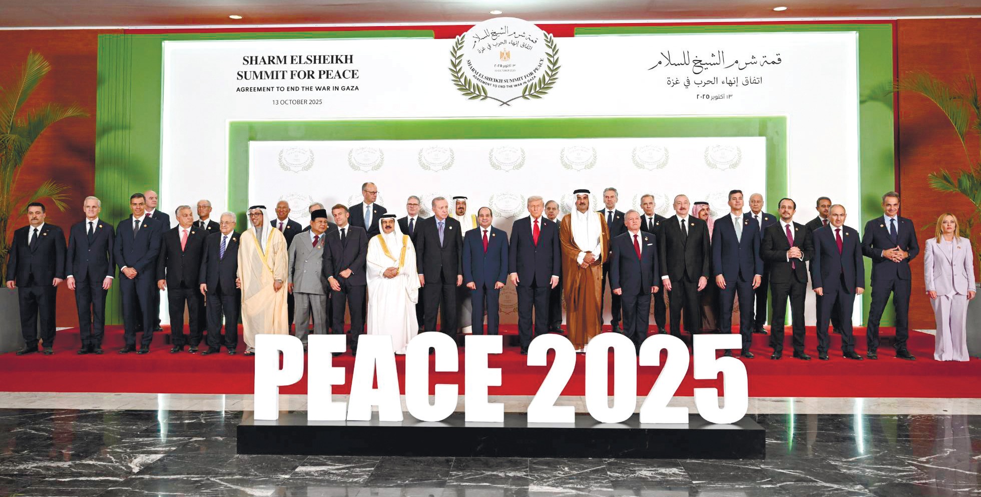 Sülh sazişinin bütün dünya tərəfindən tanınması baxımından kulminasiya Misirin Şarm-əl-Şeyx şəhərində keçirilən «sülh sammiti» olub. Bu, diplomatik səylərin institusionallaşdırılması, Qərbin aparıcı gücləri ilə ərəb dünyası və beynəlxalq təşkilatların bir araya gətirilməsi cəhdi idi. Donald Trampın, BMT Baş katibinin, Fransa və Türkiyə Prezidentlərinin, İordaniya, Pakistan, İtaliya, İspaniya liderlərinin iştirak etdikləri sammit sanki Yaxın Şərq məsələləri ilə bağlı nadir razılaşmanın əldə olunduğu «kiçik BMT» statusu qazanıb. Sammitin gedişində ABŞ, Misir, Qətər və Türkiyə liderləri vasitəçilərin iştirakı ilə Donald Trampın irəli sürdüyü sülh planı əsasında Qəzzada atəşkəsə dair sazişi imzalayıblar. Orada Azərbaycan Prezidenti İlham Əliyev ilə Ermənistanın Baş naziri Nikol Paşinyanın iştirakı da xüsusi rəmzi əhəmiyyət daşıyırdı. Məsələ ondadır ki, iki ay əvvəl Vaşinqtonda məhz onların iştirakı ilə Cənubi Qafqaz tarixində yeni səhifə açan daha bir sənəd imzalanmışdı.