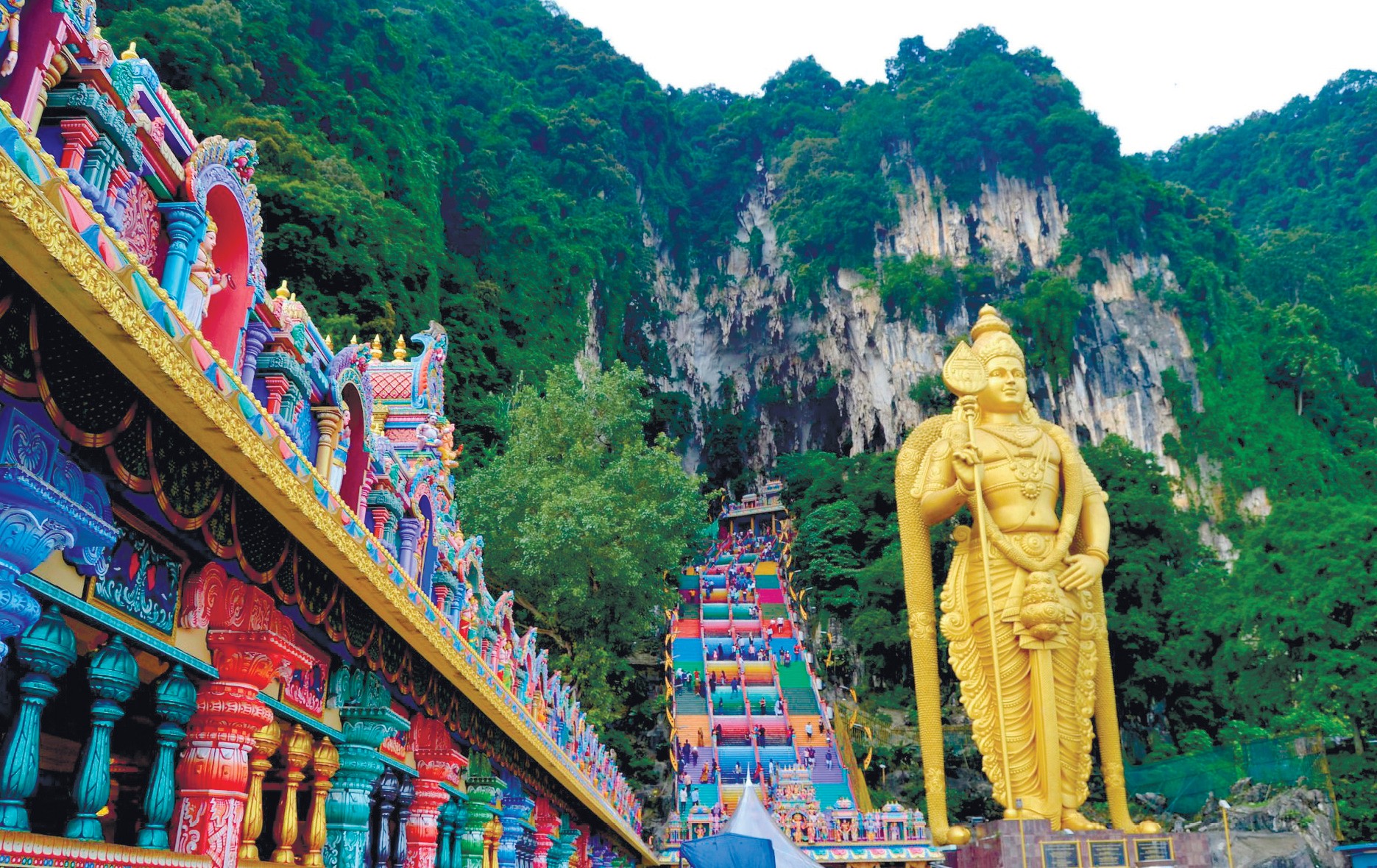 For something unique, Batu Caves offers an extraordinary experience. Located 13 km from the centre with 272 steps to climb, this complex houses temples dedicated to Hindu deities. A giant statue of Murugan stands guard at its base.