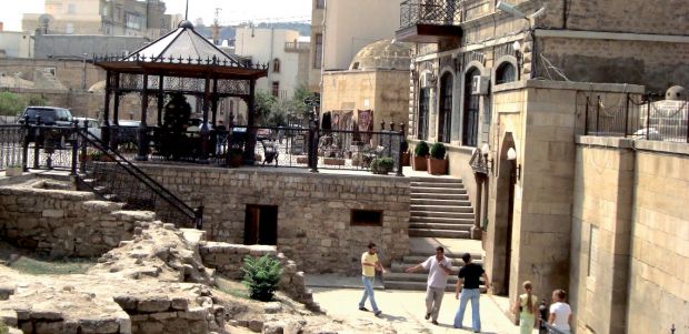 Давайте пройдемся по старому городу - Ичери шэхэр; полюбуемся его узкими улочками, Дворцом Ширваншахов, минаретами вновь отстроенной мечети, Девичьей башней, Каравансараем и старинной торговой площадью, куда на верблюдах и мулах по караванному пути купцы разных стран привозили свои товары… Здесь шла бойкая торговля и звонкие голоса зазывал едва могли перекричать разноязыкий гомон продающе-покупающей толпы. Так, постепенно, начиная с XVI века, Баку становится весьма выгодным торговым центром на всем караванном пути. Сюда с Востока и Запада приезжают купцы, заключаются выгодные торговые сделки на покупку шелков, ковров, черной маслянистой жидкости, которую использовали для освещения улиц, пряностей и много чего другого. Сюда из Индии приходят зораострийцы, чтобы построить храм огню и поклоняться ему как высшему божеству. Таких храмов всего три во всем мире. Один - на Абшероне. Знаете, если подняться в воздух и с высоты птичьего полета посмотреть на него сверху, то можно увидеть, что этот полуостров похож на парящего в воздухе орла с острым длинным клювом. Но не будем отрываться от земли и посмотрим на Храм огнепоклонников вблизи. Сейчас здесь музей, где любят бывать туристы. А настоящий огонь, который вырывается из-под земли, можно увидеть на Янардаге. Он горит там круглый год. Даже во время дождя. Бакинцы любят приехать сюда на часок-другой, посидеть у огня, полюбоваться им. Это тоже чудо природы, которому, как явлению, давным-давно дано объяснение, но в нас все еще живы инстинкты язычников и мы с удовольствием и благоговением смотрим на этот вырывающийся из-под земли и воспламеняющийся газ.