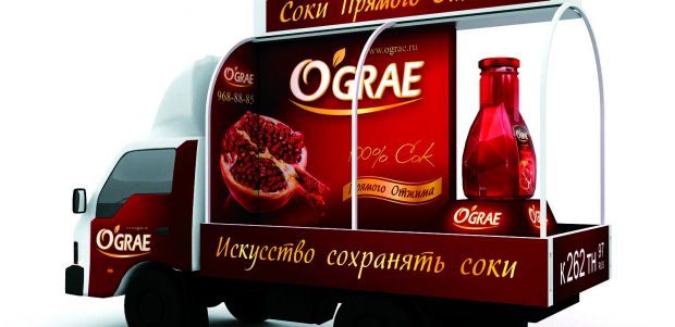 - Сильный товарный знак должен нести художественную ценность - в этом случае стоимость товара на 15-50% выше. Он должен обладать образностью, информативностью, а также формировать позитивное отношение к товару или услуге, имея запас прочности. В рекламе товара скрыт глубокий смысл в форме, цвете, шрифтах - таким образом человек наделяет рекламируемый продукт дополнительными свойствами. И объект становится образом, реализуя миф о своем происхождении, об элитарности и эстетической ценности. Например, при выборе названия бренда мы обратились к мифу об угасающем древнем роде O'Grae. И только благодаря чудодейственным плодам граната и его живительному соку благородный герцог O'Grae был исцелен и спас свой род от гибели. По легенде с тех пор и появилась культура разведения драгоценных плодов. Вообще же промышленное производство соков началось в XIX веке.
