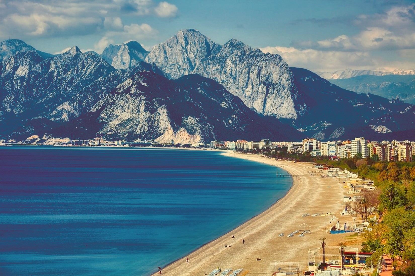 Пока Европа кутается в пальто, Анталья живет на солнечных паузах. Здесь зима не отменяет море, а просто меняет декорации. Пальмы остаются на своих местах, Средиземное море никуда не исчезает, а на далеком фоне заснеженных гор можно найти купающихся туристов. Курорт, который все привыкли видеть летом шумным и жарким, зимой становится неожиданно спокойным.
