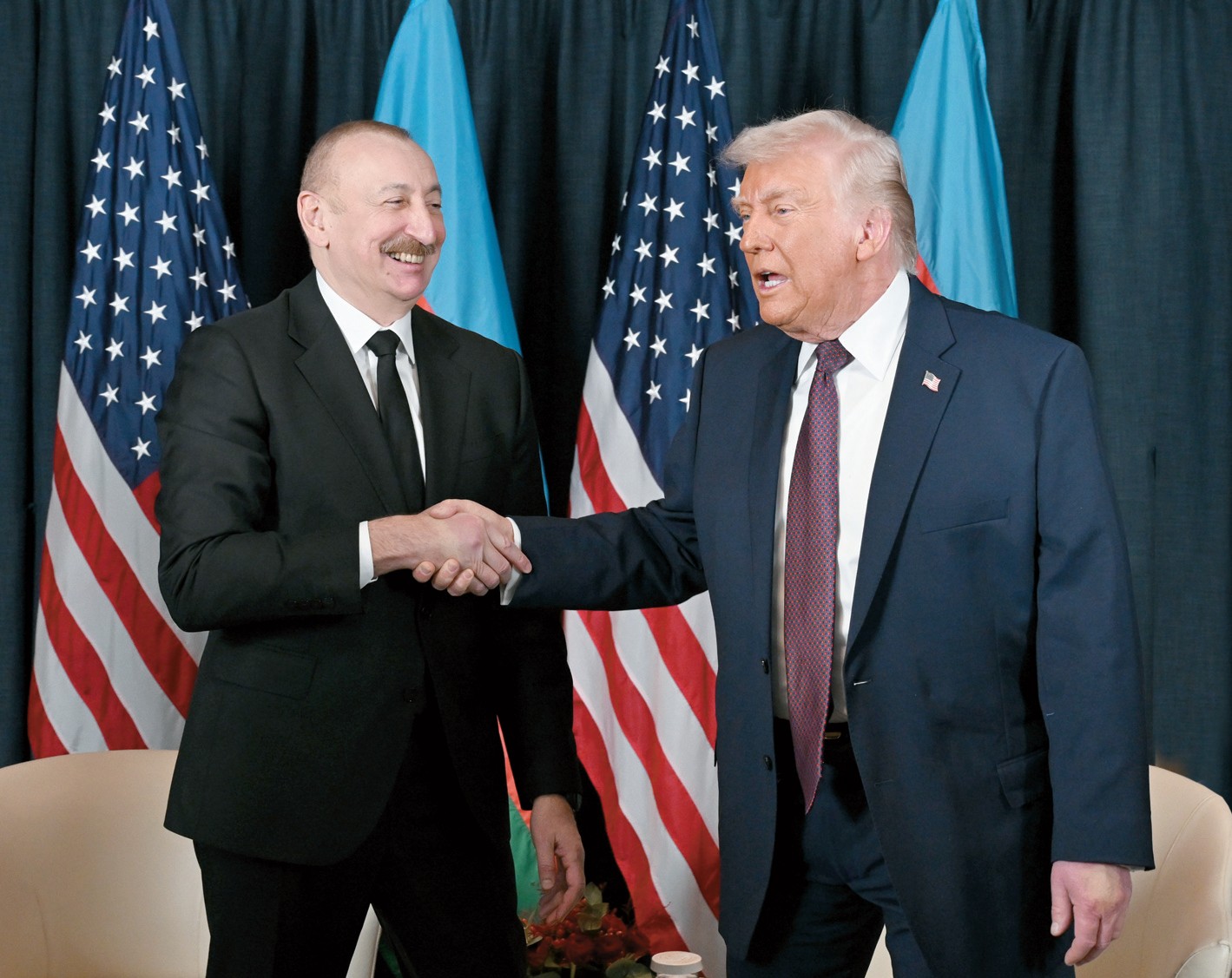 В первую очередь необходимо отметить встречу Президента Азербайджана с американским коллегой Дональдом Трампом, которая состоялась сразу после церемонии подписания документа «Устав Совета мира» в Давосе. На ней было выражено удовлетворение развитием связей между двумя странами в различных сферах после возвращения Дональда Трампа к власти. Подчеркнута его историческая роль в достижении 8 августа 2025 г. в Вашингтоне договоренностей, связанных с продвижением мирной повестки между Азербайджаном и Арменией. Ильхам Алиев отметил, что Зангезурский коридор, в том числе проект TRIPP, играет важную роль с точки зрения региональной связности. Стороны обменялись мнениями о перспективах двусторонних связей, указали на роль взаимных визитов и контактов на различных уровнях в углублении отношений.