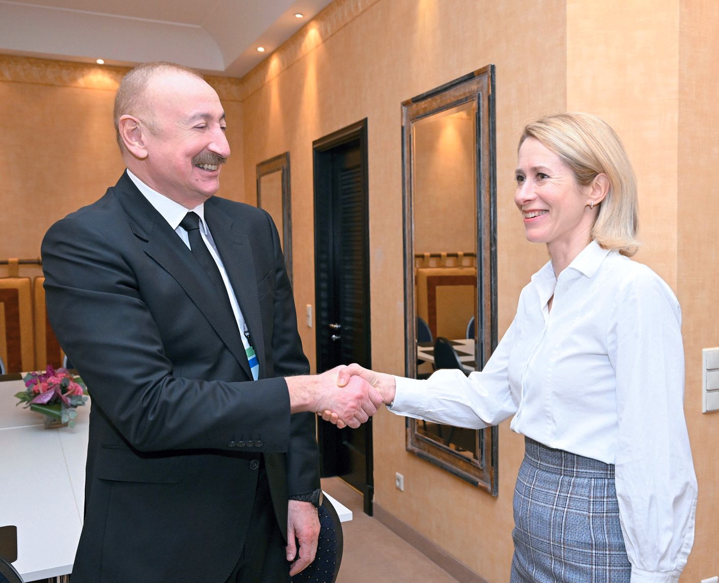 На встрече с Ильхамом Алиевым верховный представитель ЕС по иностранным делам и политике безопасности Кая Каллас выразила заинтересованность Евросоюза в дальнейшем развитии отношений с Азербайджаном. Было подчеркнуто успешное сотрудничество в энергетике, в этом контексте затронут весомый вклад Азербайджана в обеспечение энергетической безопасности Европы. Подчеркивалось наличие широких возможностей для сотрудничества в транспортной сфере, а также для обеспечения прочного мира и стабильности в регионе Южного Кавказа.